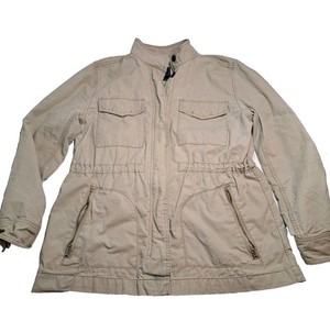 Chaqueta utilitaria GAP para mujer talla L bolsillos cremallera completa broches de presión caqui tostado cuello falso LEER