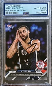Tarjeta firmada por Stephen Curry 2024 Topps Now Olympics #27 medalla de oro EE. UU. PSA/DNA