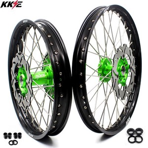 KKE 21/19'' Wheels Rims Fit Kawasaki KX125 KX250 2003-2005 CNC Green Hub Offroad