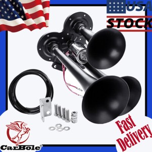 New 3 Trumpets Air Horn Set For Train/Ship/Truck/Car/SUV Loud Sound Kit 12V 24V