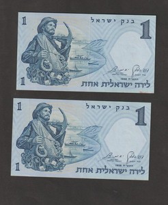Israel 1958 1 Lira (AU) Estado 2 Billetes siguiendo Serie P-30c