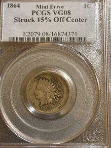Centavo cabeza india 1864 error de acuñación raro acuñado 15 % de descuento en el centro pieza en muy buen estado 08 moneda genial 338,31 EUR