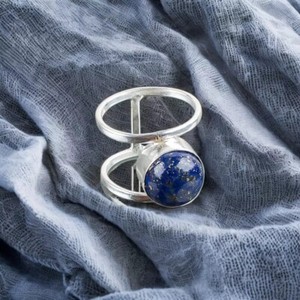 Anillo de plata de ley 925 con piedras preciosas de lapislázuli natural joyería hecha a mano