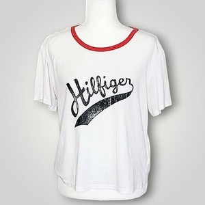 Tommy Hilfiger Camiseta Recortada Estilo Vintage Logo Blanco Rojo Talla XL
