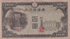 Billete de 100 yenes de Taiwán (Banco de China) 1945 P-1932b en estado bastante bueno/en estado bastante bueno+ 171,58 EUR