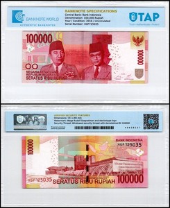 Indonesia 100000 rupias, 2016, P-153Ac, autenticado UNC