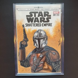 Star Wars Shattered Empire 1 boceto artístico original Mandalorian Djarin Marvel 2015