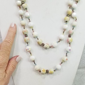 Collar de 60" estilo rosario cuentas facetadas vintage blanco pintado pastel y recubierto de AB