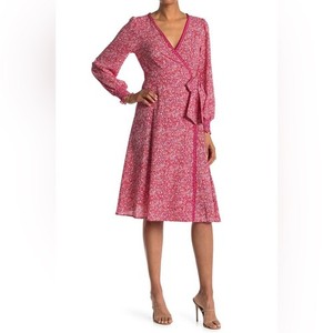 Vestido envolvente Max Studio estampado floral de puntos manga globo en rosa oscuro talla grande