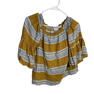 Blusa Passport Para Mujer Pequeña Rayas Mostaza Acampanada Cuello Redondo Top Informal Boho