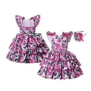Excellent Seller, Super Fast Delivery and Beautiful Sweet Girls Check Spanish Pink Dress Christmas Party Prom With Headband age 12 years......Thank u