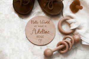 Hello World Baby Arrival Wooden Sign, Engraved Baby Name Plaque , Keepsake, Wood