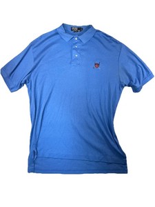 Polo Vintage por Ralph Lauren Polo Azul Hecho en EE. UU. Golf Bordado Dobladillo Alto-Bajo