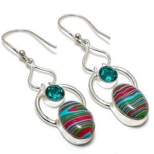 Pendientes enchapados en plata con piedras preciosas de cuarzo apatita calsilica arco iris joyería 2,5"