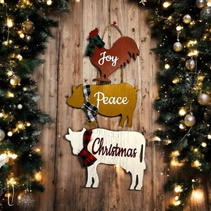 Animales de corral (vaca, cerdo y gallo) Navidad colgante de pared: granja de campo