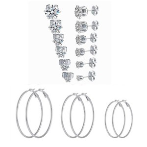 Juego de 9 pares (6 pares de aretes de circonita cúbica + 3 pares de aros hipoalergénicos)