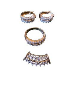 Ross Simon Parure Diamante Ilusión Anillo Pendientes Colgante Vermeil Sobre Esterlina