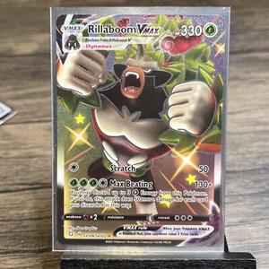 Tarjeta Pokémon Rillaboom VMAX SV106/SV122 Shining Fates arte completo ultra rara casi nueva