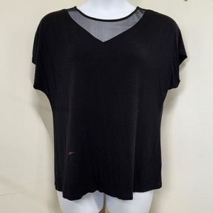 Blusa Tahari Para Mujer Talla XL Negra Transparente Cuello Redondo Mangas Cortas *LEER*