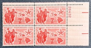 Scott #C55, bloque de placa de correo aéreo UR, MNH - Hawaii Statehood 1959