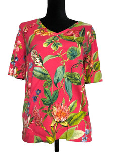 Top rosa manga corta 100 % algodón Pima Chico's estampado floral cuello en V grande