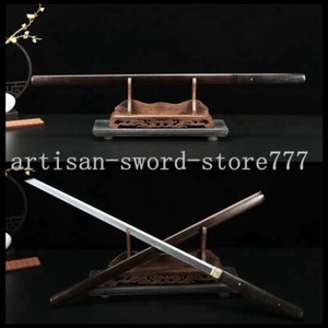Espada Samurai Japonesa Katana Shirasaya Acero Templado Arcilla Hamon Fuego Ébano