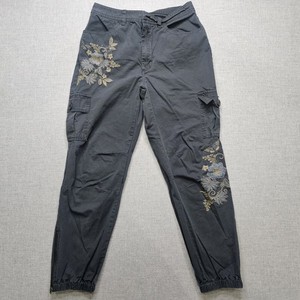 Pantalones cargo Sundance florales bordados para mujer talla 2 grises utilitarios estilo boho