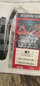 Pase de prensa oficial autografiado por Manny Pacquiao asientos reservados MGM Grand
