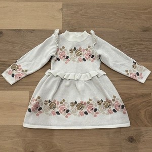 Vestido Suéter Janie & Jack Blanco y Rosa Floral Volantes Talla 5 Cuello Simulado