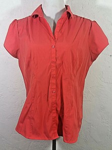 Camisa de trabajo profesional Dressbarn para mujer XL Top con botones naranja manga corta cuello en V