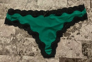 NUEVO CON ETIQUETAS BRAGAS TANGA VICTORIA'S SECRET GRANDES VERDE SATINADO LISO NEGRO ENCAJE RARAS