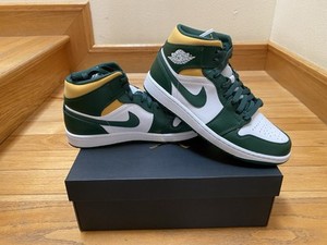 Nike Air Jordan 1 Mid Sonics Noble Green/Pollen M. Size 9.5,554724 371 BNIB DS