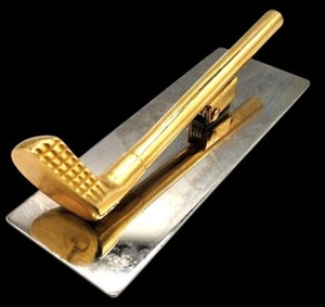 Soporte de papel para palos de golf años 70 clip de latón documento vintage novedad oficina regalo