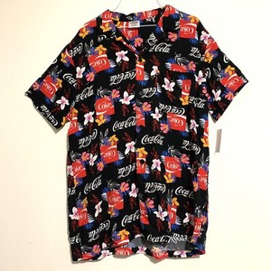 CAMISETA Para Hombres Talla MEDIANA Coca Cola Abotonada Rayón Floral Camisa Hawaiana Bolsillo