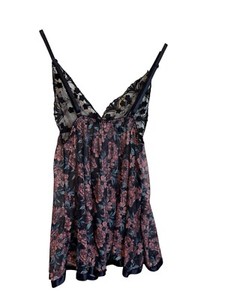 Sexy Vestido Sin Mangas Vintage Dinastía California Satinado Encaje Grande Chemise Floral EE. UU. 21,57 EUR