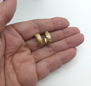 Pendientes perforados de aro de metal tono dorado con textura de línea pequeña vintage