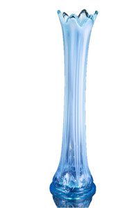 "Florero oscilante de vidrio opalescente azul victoriano - 14"" de alto"