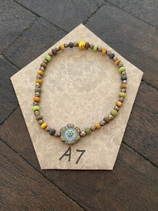I really like this bracelet. Is more beautiful in person. The elastic style is easy to put on and comfortable to wear. Fast shipping and well packaged. Item looks like the photo. Beautiful color combination. Item is as described by seller. I'm very happy with purchase. Thank you!