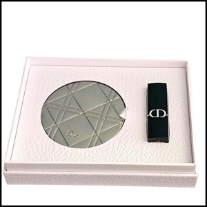 Lápiz labial satinado Dior Rouge 720 Icon + juego de regalo espejo doble cara Cannage plateado
