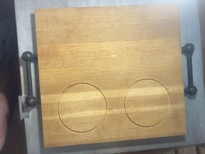 Tabla de cortar de madera COPCO vintage asas de metal mediados de siglo Kenneth Brozen