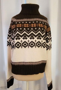 Suéter corto American Eagle marrón crema Fair Isle cuello alto grande para mujer