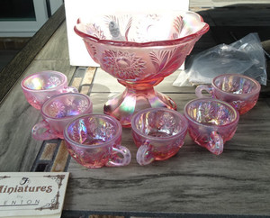 Fenton Rosa Carnaval Vidrio Hobstar Miniatura Mini Niño Punzón Set 6 Tazas 6800DZ