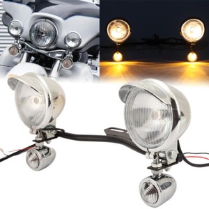 Chrome Spot Passing Lights Lamp Turn Signals Bar for 1994-2013 Harley Road King