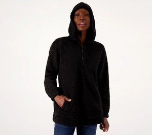 NUEVO CON ETIQUETAS SUÉTER CON CAPUCHA SHERPA TRASERO CEPILLADO KOOLABURRA BY UGG, NEGRO, MEDIANO