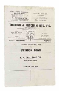 TOOTING & MITCHAM UNITED V SWINDON TOWN - FA CUP TERCERA REPETICIÓN - 6/1/1976