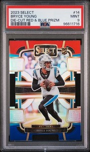 Panini Select #14 Bryce Young Prizms rojo y azul 2023 troquelado PSA 9