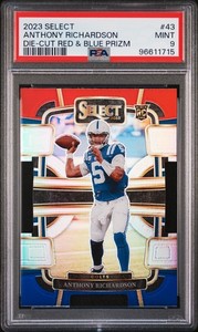 Panini Select #43 Anthony Richardson Prizms rojo y azul 2023 troquelado PSA 9