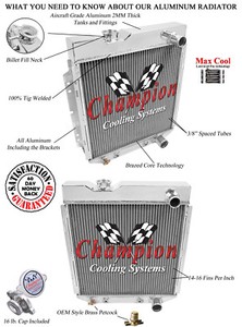 ¡Cold Auto Cooling es un orgulloso distribuidor autorizado de radiadores Champion Cooling Systems! Se utilizan los grados de aluminio más altos disponibles. Todos los radiadores Champion están construidos con costuras 100 % soldadas, tecnología de núcleo soldado y absolutamente ningún epoxi. Todos los radiadores Champion vienen con una garantía limitada de por vida y están hechos para instalarse sin ninguna modificación utilizando tus soportes originales y la cubierta del ventilador, lo que te da la confianza que mereces. Ofreciendo un producto de alta calidad que no tiene paralelo en su funcionalidad, mano de obra de precisión, valor inigualable y servicio al cliente.