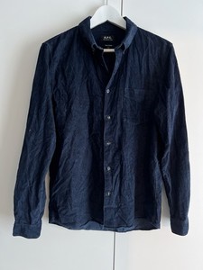 A.P.C. Camisa Para Hombre Grande Azul Marino Manga Larga Abotonada Informal Bolsillo Algodón