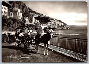 Foto postal real Amalfi Italia RPPC panorámica carruaje de caballos vista c.1950